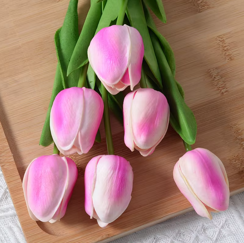 Tulip Artificial Flower I Yellow with streaks of Orange and Red on the petals I 1 Piece